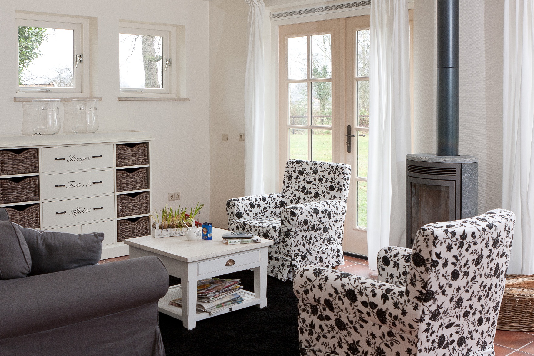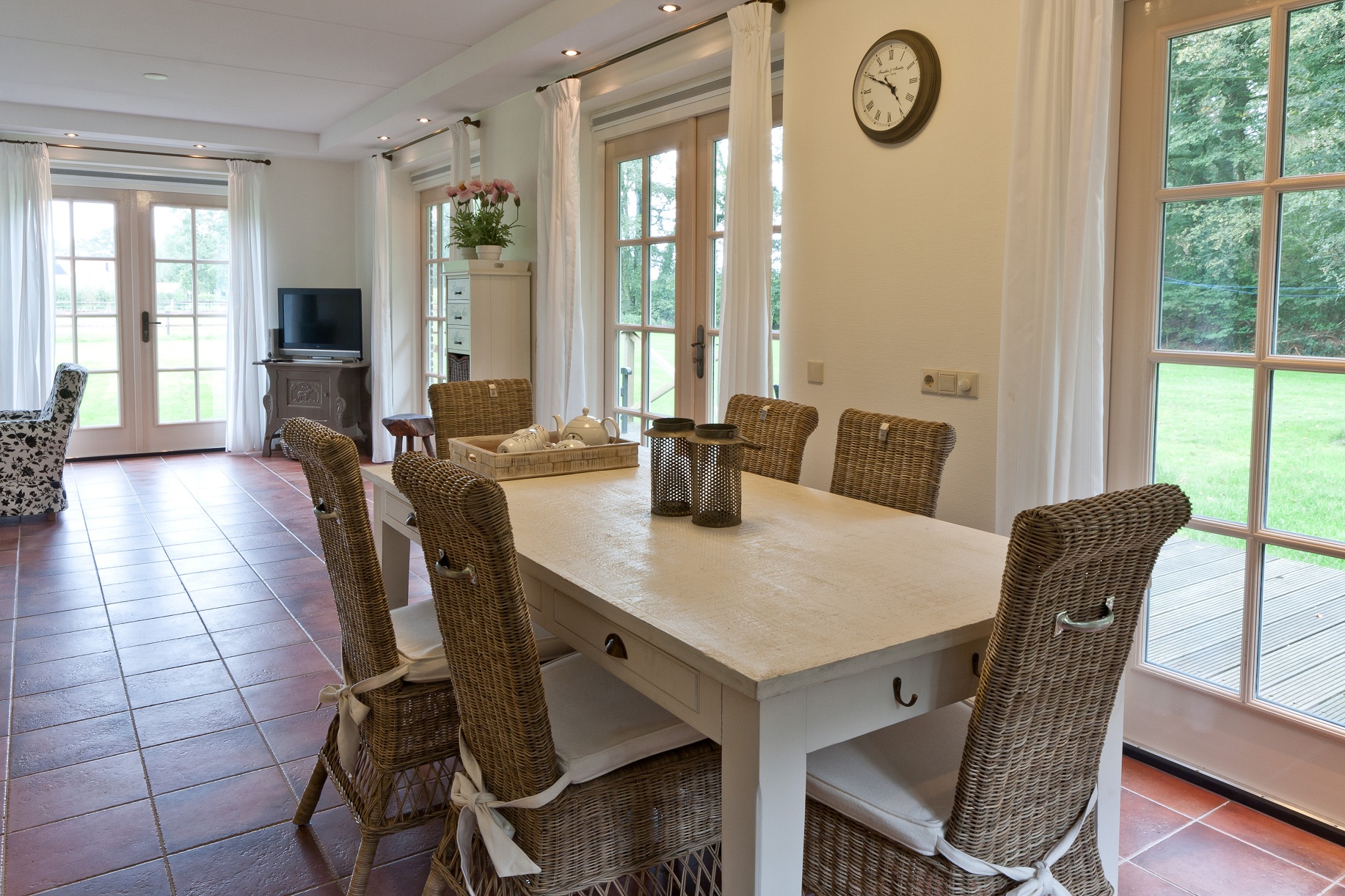 Vakantiehuis De Scheper is een vrijstaande woning 50 meter achter onze eigen woning. Het is omgeven door een groot grasveld dat aan 2 zijden in bos overloopt. Een hoge laurierhaag zorgt voor de scheiding tussen de beide woningen. U hebt hier volledige privacy, rust en ruimte. Het is een ruime en luxe woning voor 4 personen met meubelen van Riviera Maison en een compleet ingerichte keuken met magnetron, oven en vaatwasser.