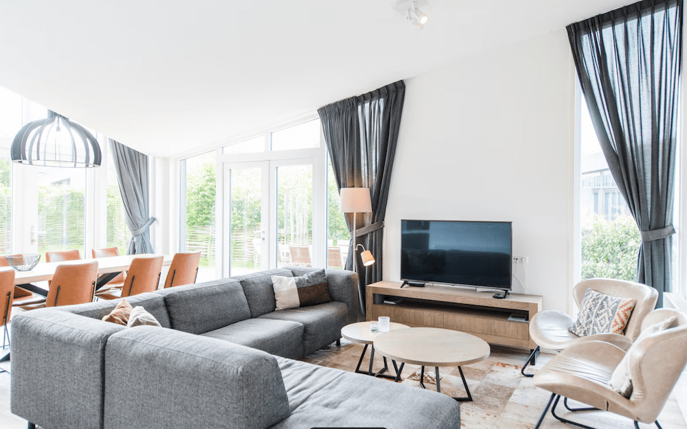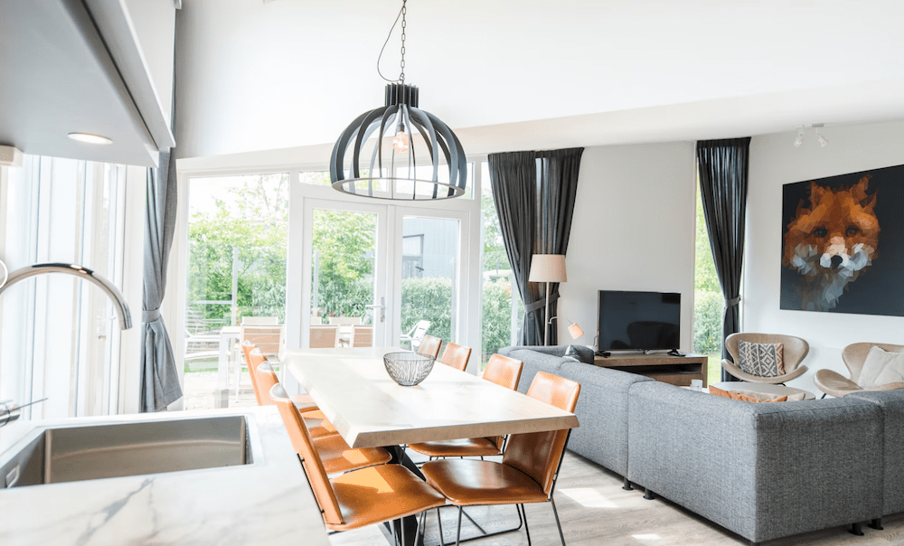 Grote ramen, lichte kleuren en een warme sfeer: hier kom je tot rust, zelfs op bewolkte dagen. De open keuken is volledig uitgerust, en in de zithoek kun je samen wegzakken met een film of boek.