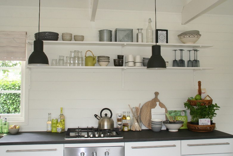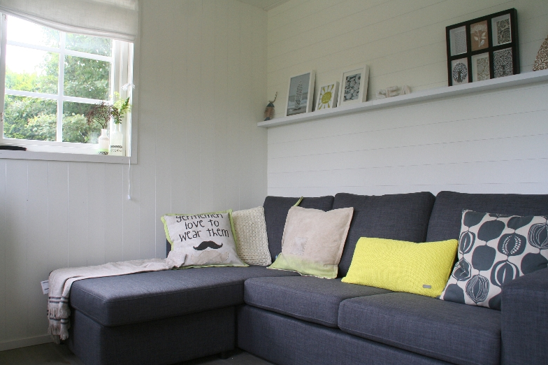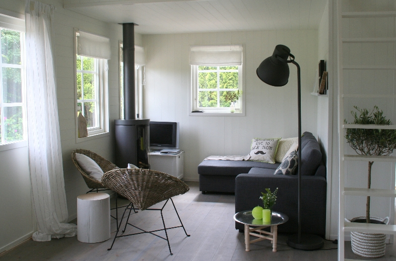 Het huis bestaat uit een entreehalletje met kastenwand met aangrenzend een royale woonkamer en open keuken, voorzien van oven en afwasmachine. In de zithoek staat een mooie gaskachel die ervoor zorgt dat het huisje op koudere dagen snel warm is. Heerlijk genieten van de gezellige vlammen! Uiteraard is er ook een TV.