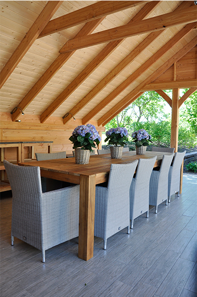 Dankzij de nieuwe buitenkeuken van Landhuis de Linde, maakt u van elke zomerse maaltijd een feestmaaltijd. En wordt het toch weer wat kouder? Geen probleem, de warmtelampen zorgen voor een aangename temperatuur.