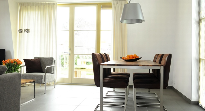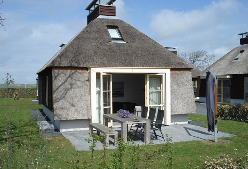 Door de openslaande deuren van de woonkamer komt u op het terras met fijn buitenmeubilair. Een heerlijke plek om te genieten van de zon en de duinen. Naast de woningen is ruimte om één auto te parkeren.